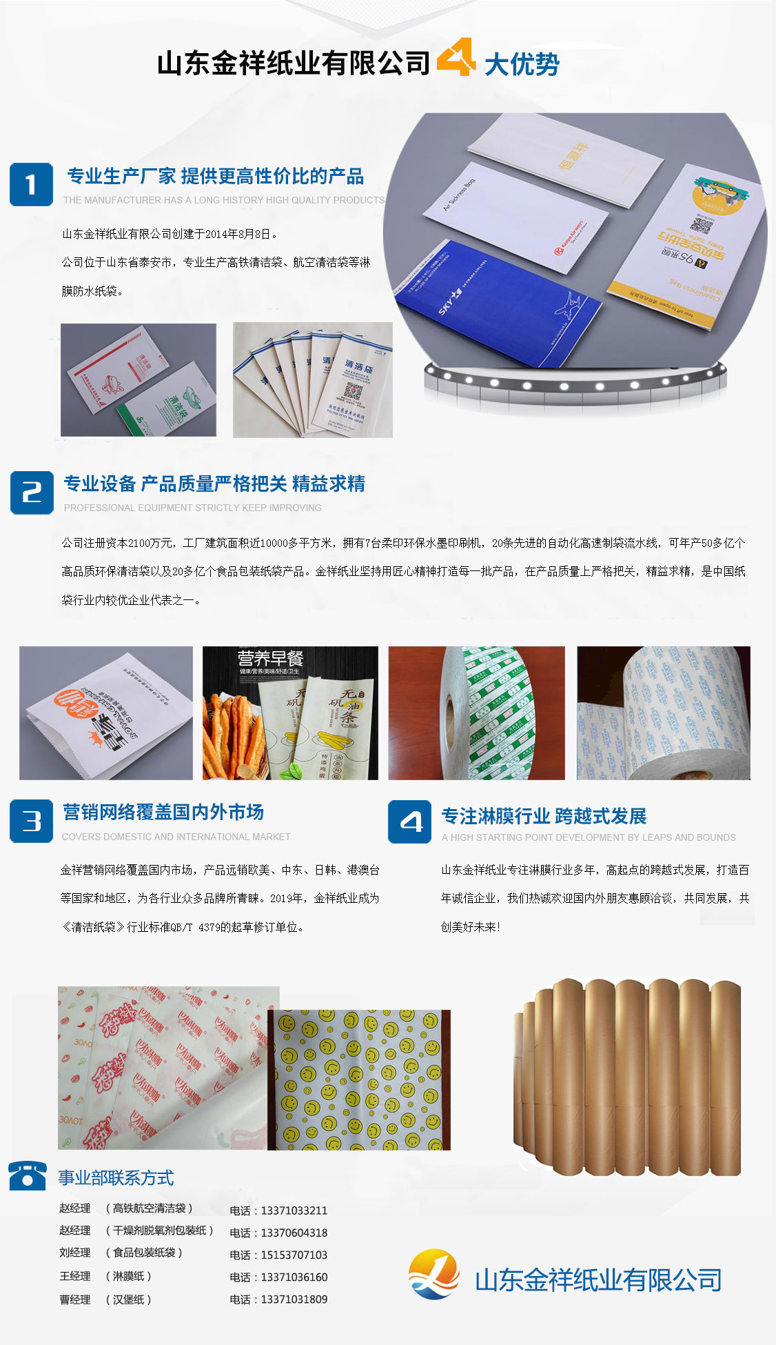 山東金祥紙業(yè)有限公司創(chuàng)建于2014年8月8日,公司位于山東泰安,專業(yè)生產(chǎn)高鐵清潔袋、航空清潔袋等淋膜防水紙袋。公司注冊資本2100萬元,工廠建筑面積近10000多平方米,擁有7臺柔印環(huán)保水墨印刷機,20條先進的自動化高速制袋流水線,可年產(chǎn)50多億個高品質(zhì)環(huán)保清潔袋以及20多億個食品包裝紙袋產(chǎn)品。金祥紙業(yè)堅持用匠心精神打造每一批產(chǎn)品,在產(chǎn)品質(zhì)量上嚴格把關(guān),精益求精,是中國紙袋行業(yè)內(nèi)較優(yōu)企業(yè)代表之一。金祥營銷網(wǎng)絡(luò)覆蓋國內(nèi)市場,產(chǎn)品遠銷歐美、中東、日韓、港澳臺等國家和地區(qū),為各行業(yè)眾多品牌所青睞。2019年,金祥紙業(yè)成為《清潔紙袋》行業(yè)標準QB/T 4379的起草修訂單位。